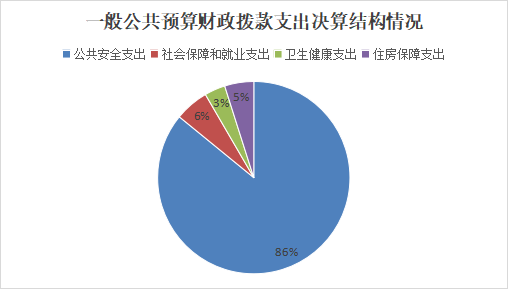 2023年度一般公共预算财政拨款支出1,697.94万元✿★◈,主要用于以下方面✿★◈:公共安全支出(类)支出1458.49万元✿★◈,占85.9%✿★◈;社会保障和就业(类)支出97.04万元✿★◈,占5.72%✿★◈;卫生健康支出(类)支出59.38万元✿★◈,占3.5%✿★◈;住房保障(类)支出83.02万元✿★◈,占4.89%✿★◈。